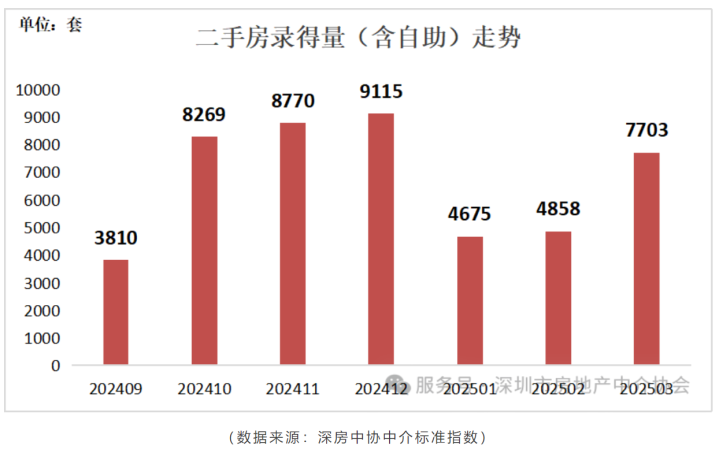 深圳市房地产中介协会数据显示,3月深圳全市二手房录得7703套,环比增长58.6%,同比增长48.2%。这一交易量远超深圳5000套的“荣枯线”,接近8000套的“繁荣线”水平。